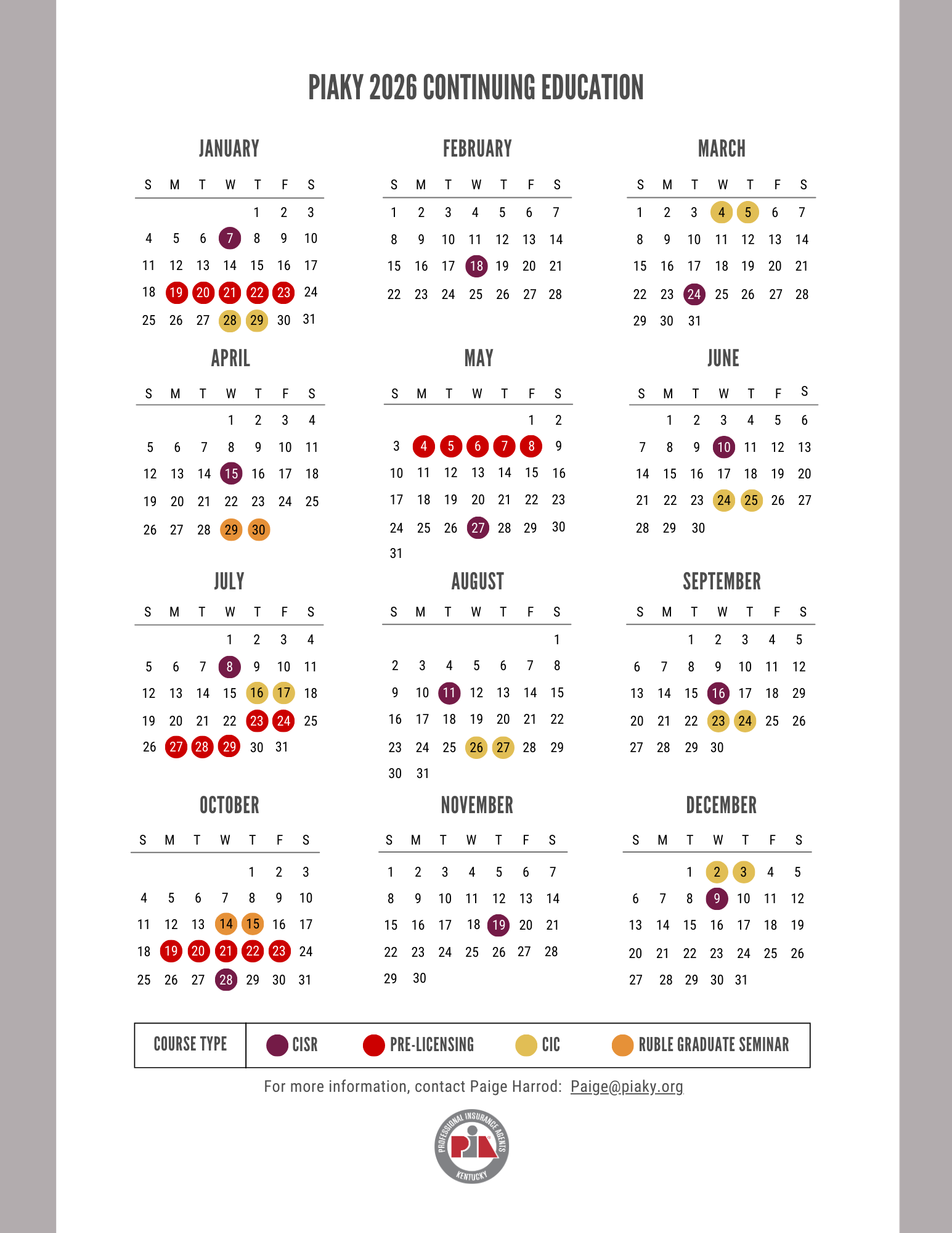 PIAKY All Events Calendar