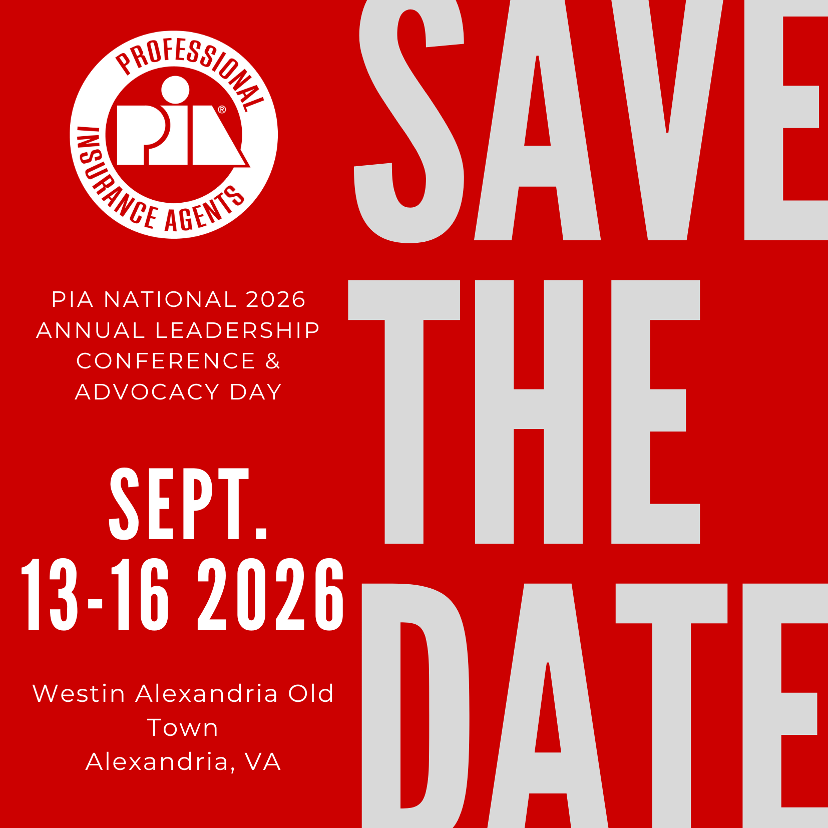 PIA National is hosting our Annual Leadership Conference and Advocacy Day on September 13 - 16, 2026 at the Westin Old Town in Alexandria VA.