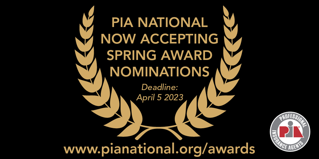 WASHINGTON — The National Association of Professional Insurance Agents (PIA) has announced a call for nominations for three prestigious awards in its 2023 Spring Awards Program. Nominations are being accepted now through Wednesday, April 5, 2023 for the association’s Professional Agent of the Year, Customer Service Representative (CSR) of the Year and Young Insurance Professional (YIP) of the Year awards.