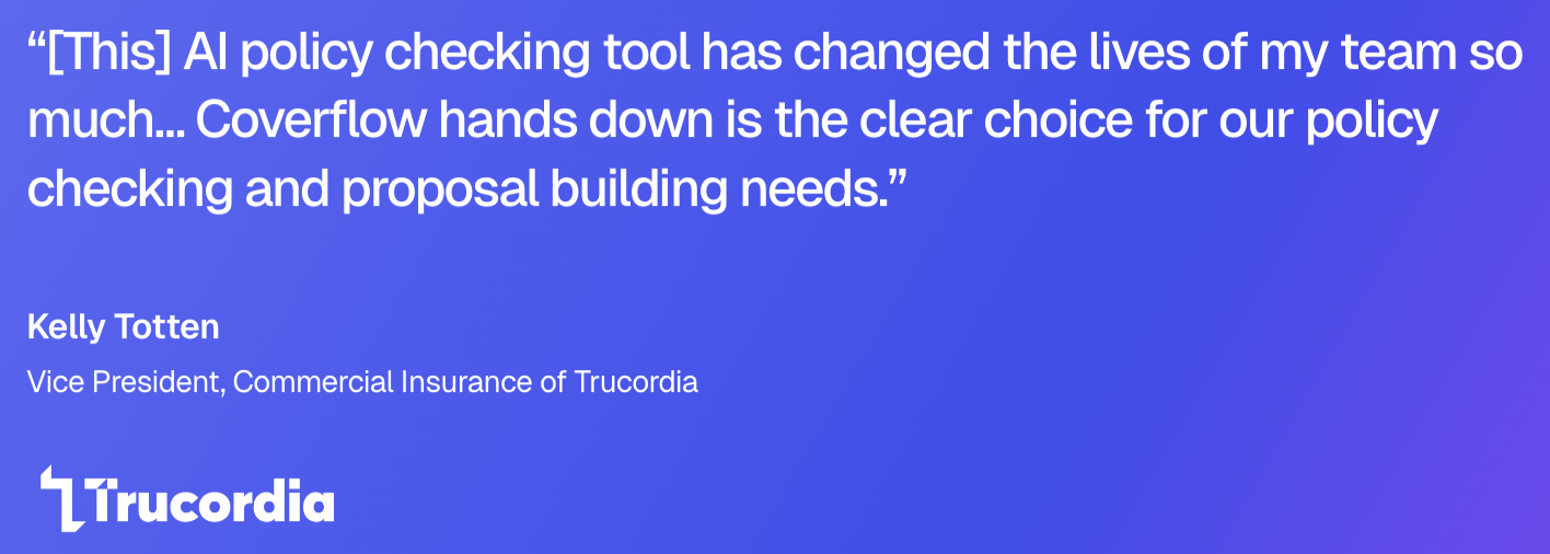 Policy checking is where E&O lives. Coverflow runs detailed policy-to-binder and policy-to-proposal checks, flags discrepancies, compares contract insurance requirements against active policies, and surfaces compliance gaps before they become claims.